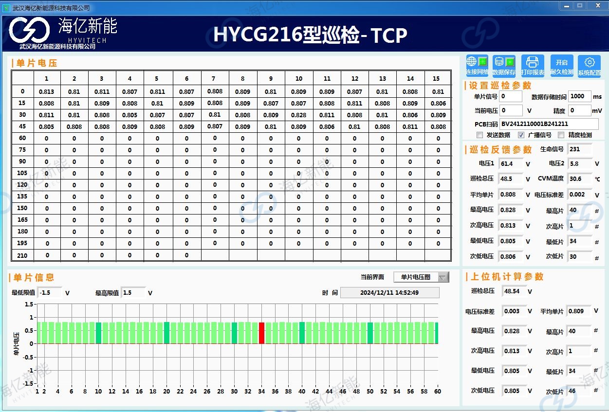 氢燃料电池单片电压巡检器(CVM)是氢能发动机系统检测的重要组成部分。海亿新能自主研发的氢燃料电池单片电压巡检器采用车规级芯片,对电堆所有单片电压数据群实现正负电压的实时检测、显示、存储与查询,并对检测的单片电压数据群进行实时分析处理,全面快速进行故障诊断,确保燃料电池电堆稳定可靠工作,并通过CAN通信/串口通讯与其他系统进行重要信息交流。不仅适用于氢燃料电池,还满足制氢电解槽电压的检测。